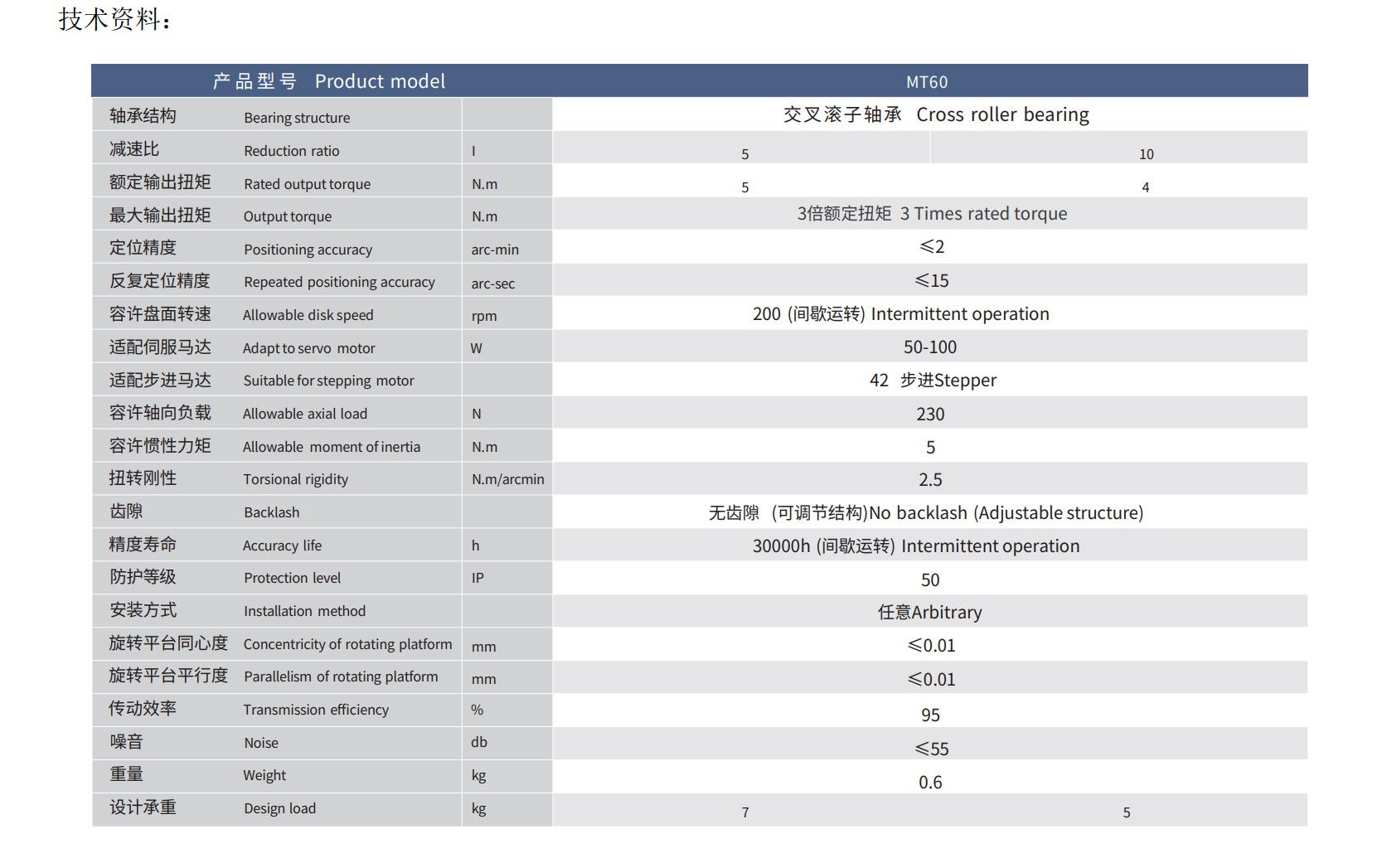 全系列产品采用交叉滚子轴承设计,通过运用高精度的齿