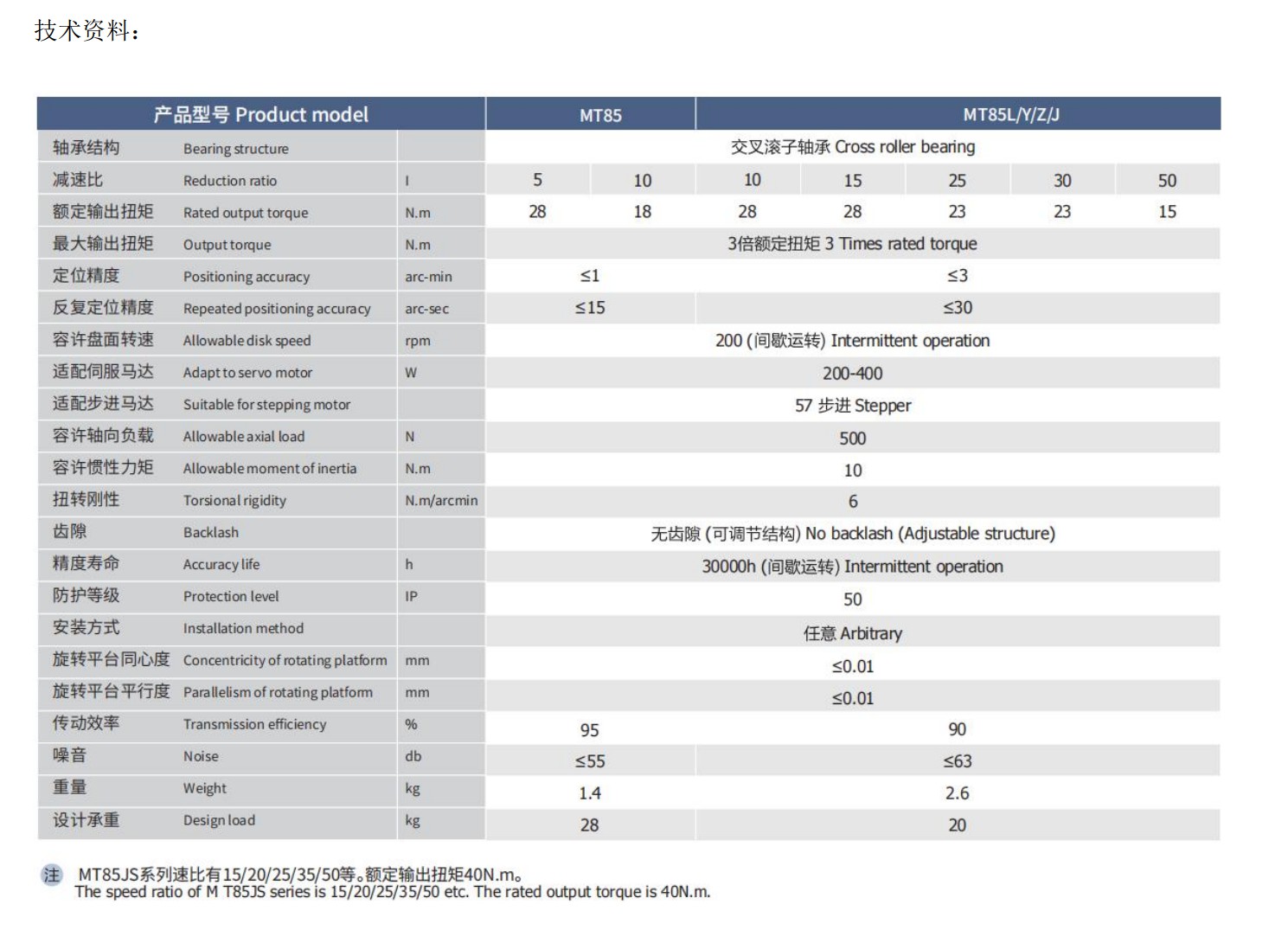 中空旋转平台MT85