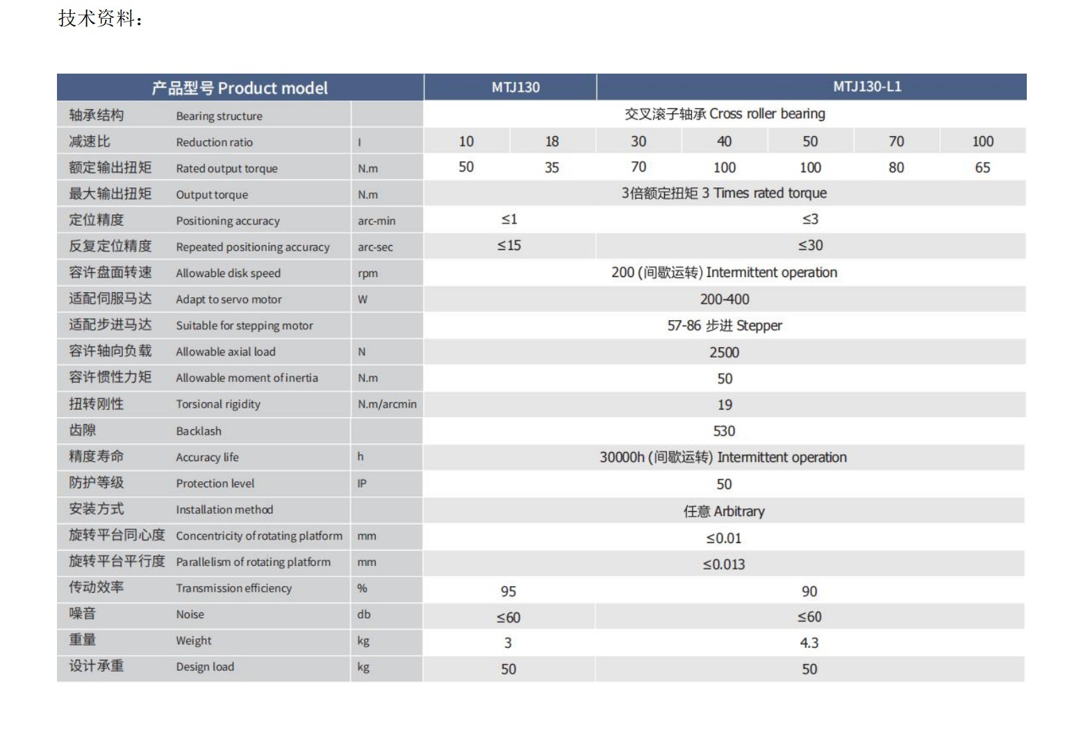 综上所述,中空旋转平台MTJ130是一款高性能、高刚性、高精度的旋转平台设备,广泛应用于各种自动化设备和工业场合。