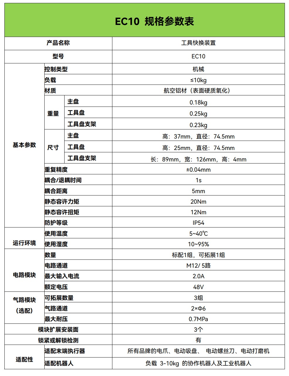 - **提高生产效率**:快速更换末端执行器,减少停机时间。