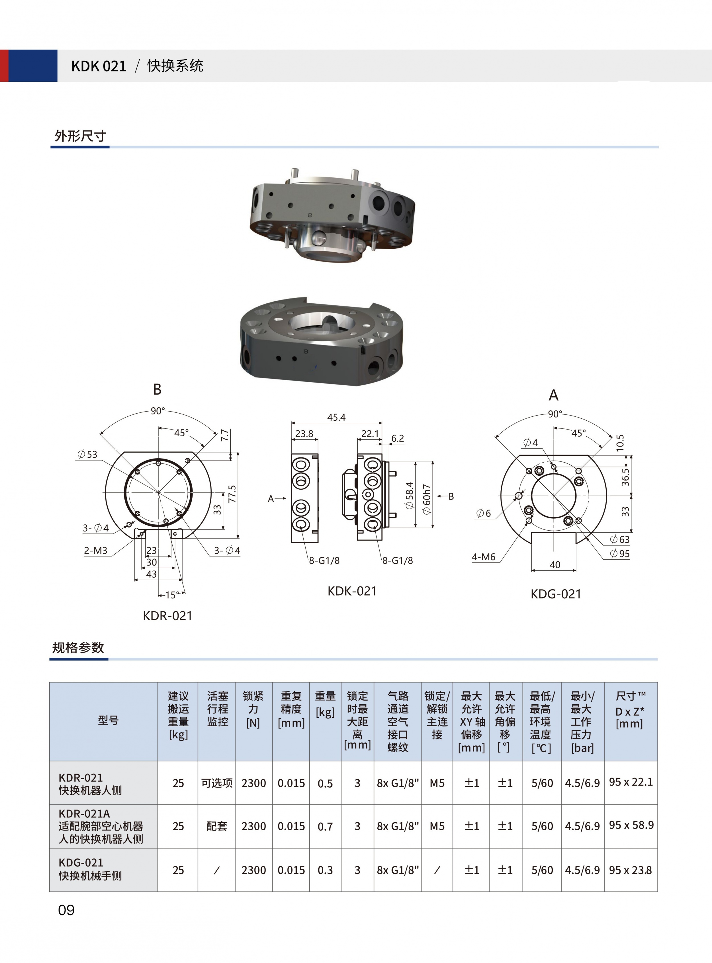 机器人气动快换 KDR-021 KDG-021 负载25kg