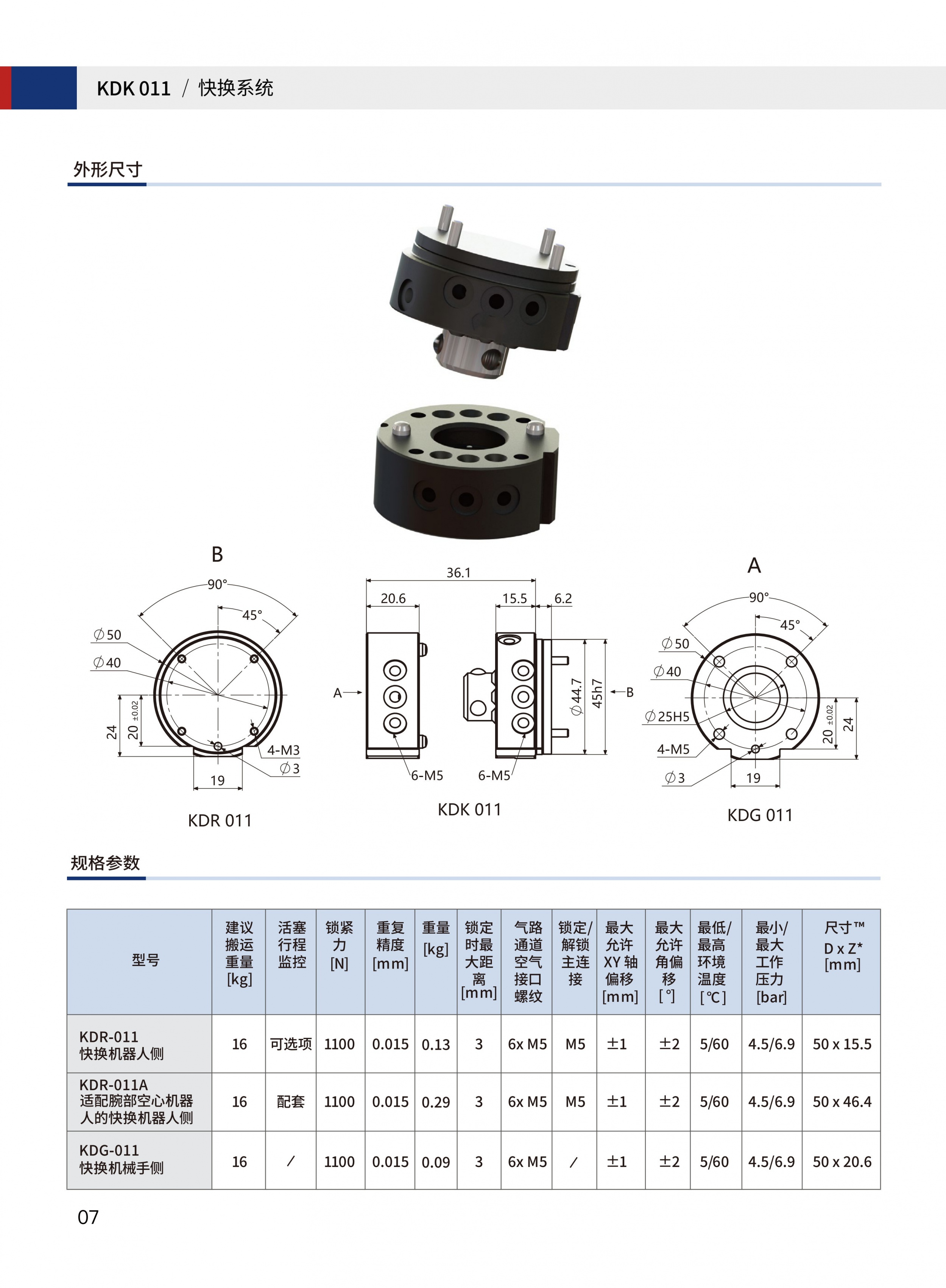 机器人气动快换 KDR-011 KDG-011 负载16kg