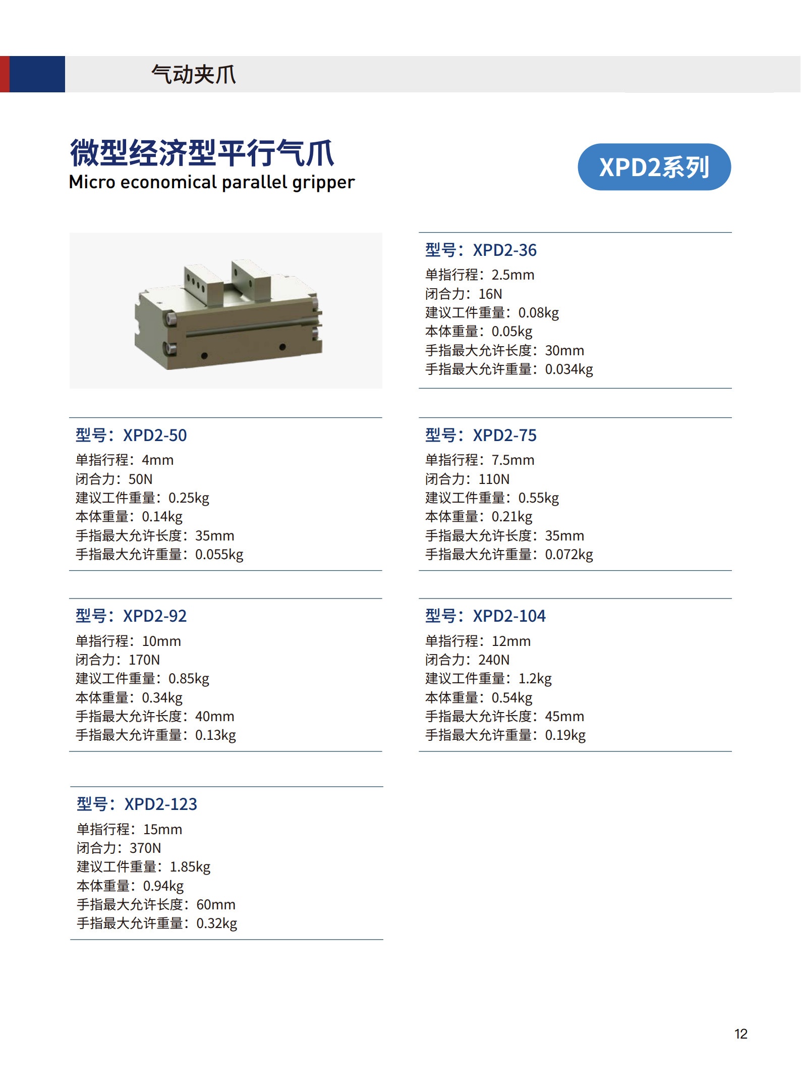 微型二指平行机械手夹爪XPD2
