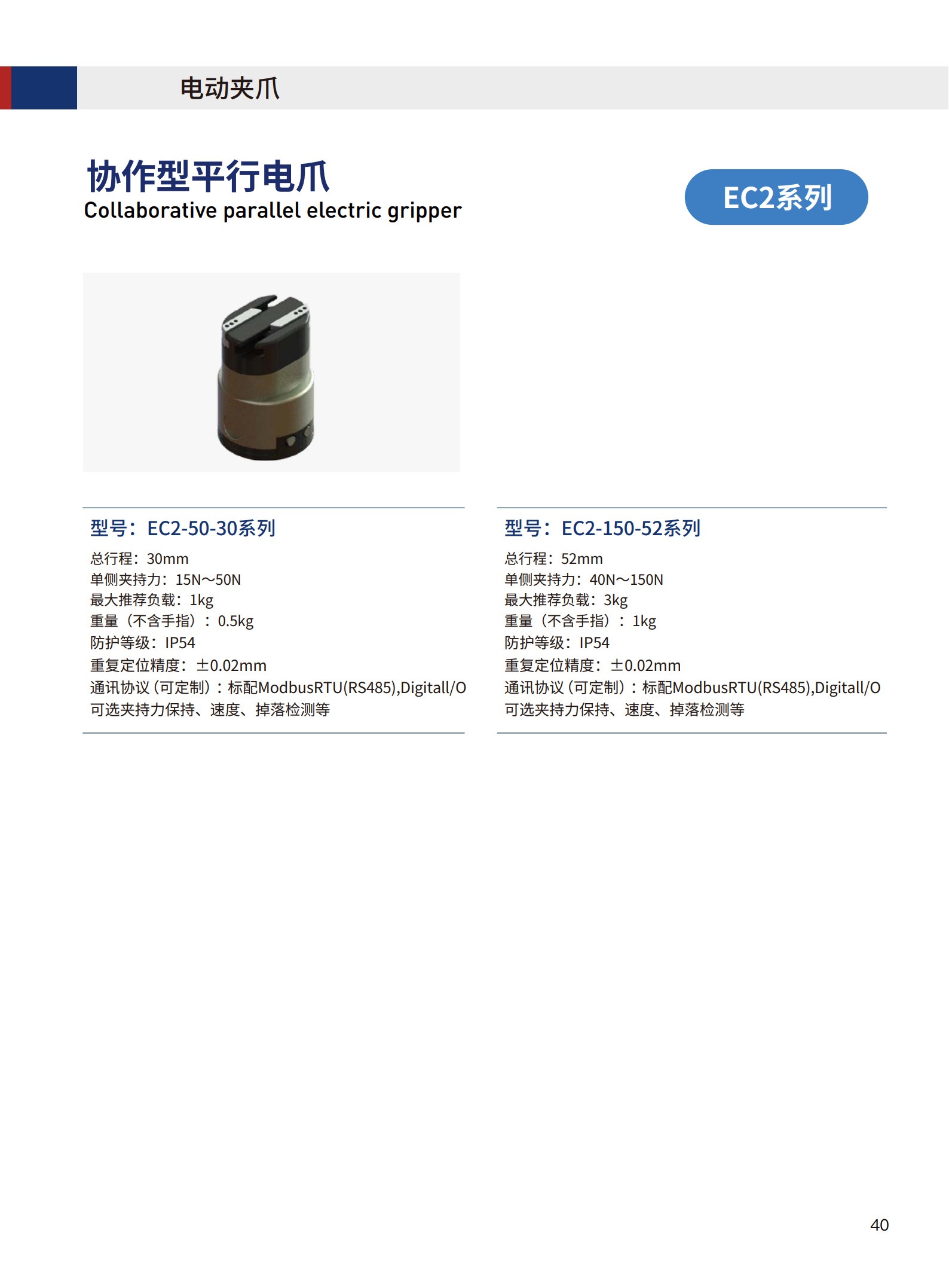 协作机器人二指电动夹爪 夹持力15-150N 行程30-52MM