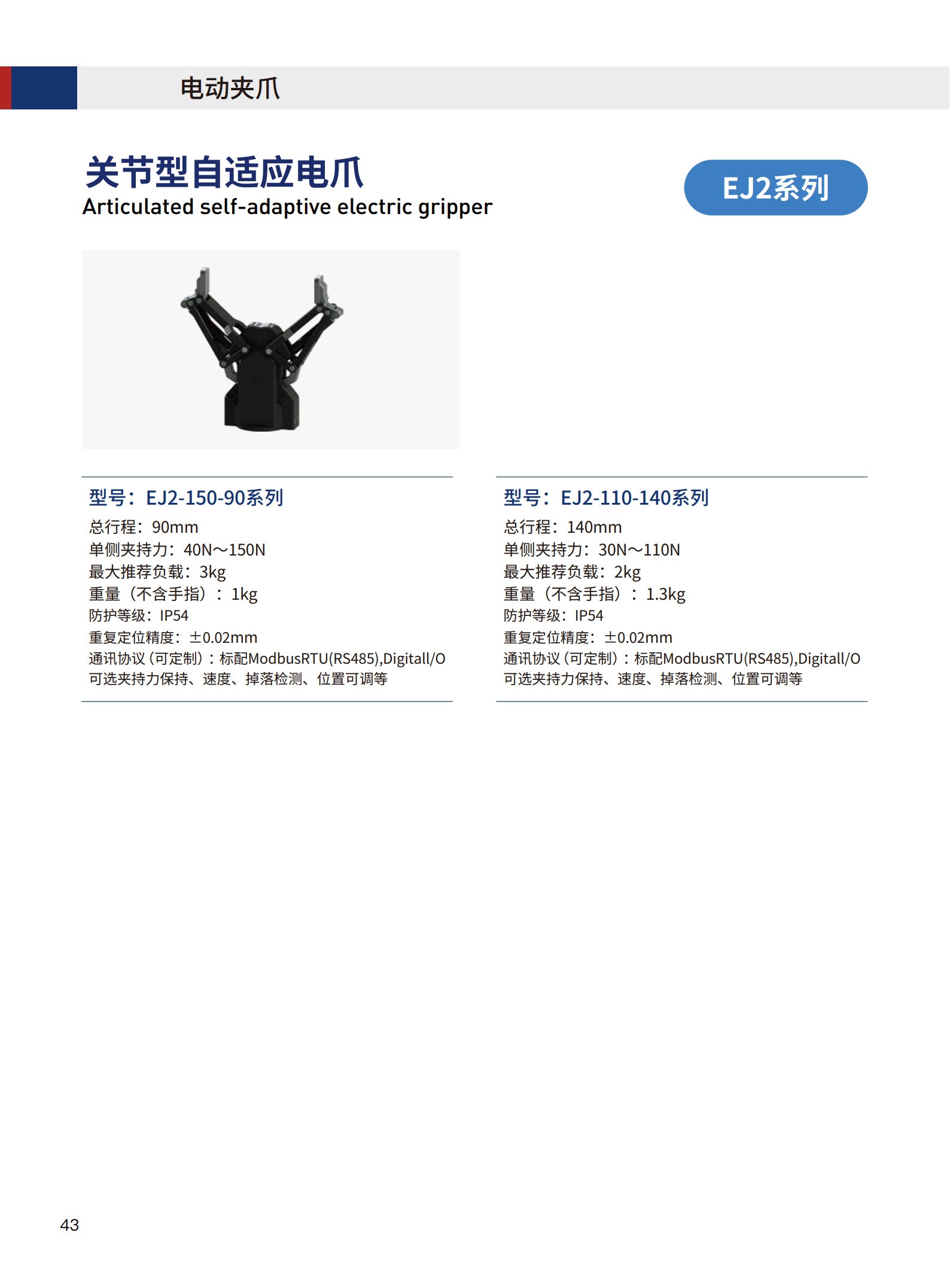协作机器人自适应二指电动夹爪 夹持力40-150N 行程90-140MM