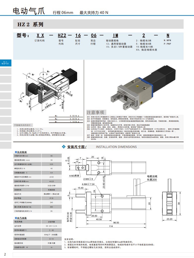 电动气爪 行程06mm 夹持力 40N