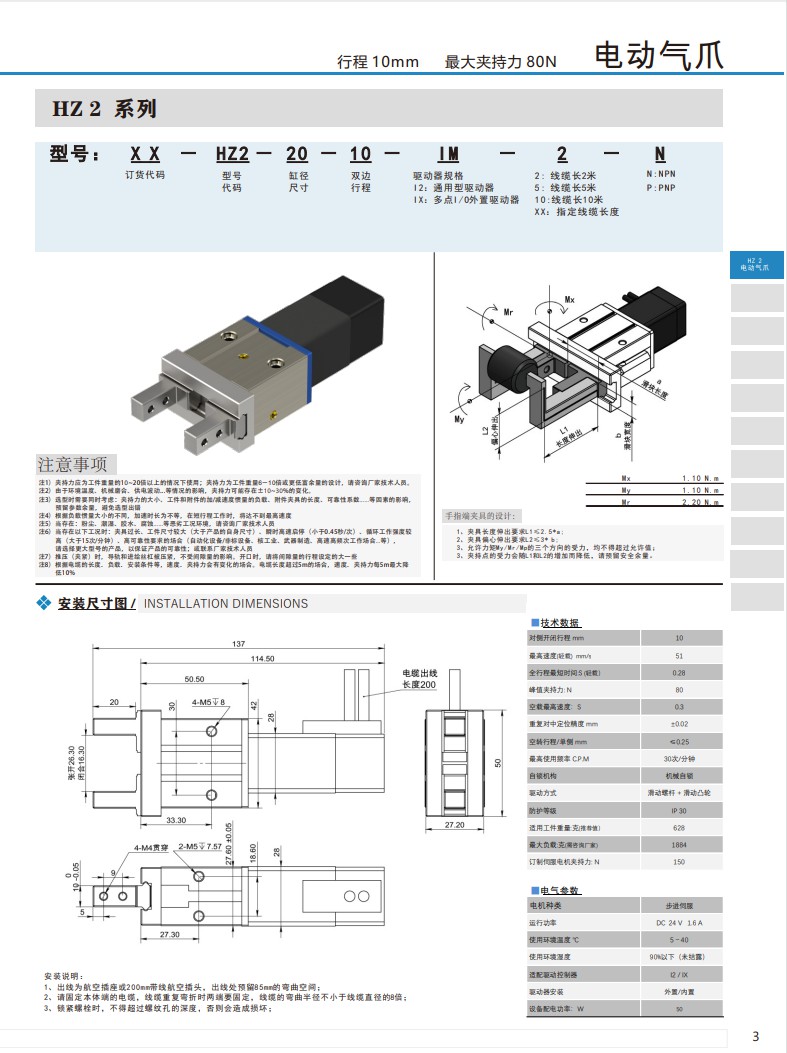 电动气爪 行程10mm 夹持力80N