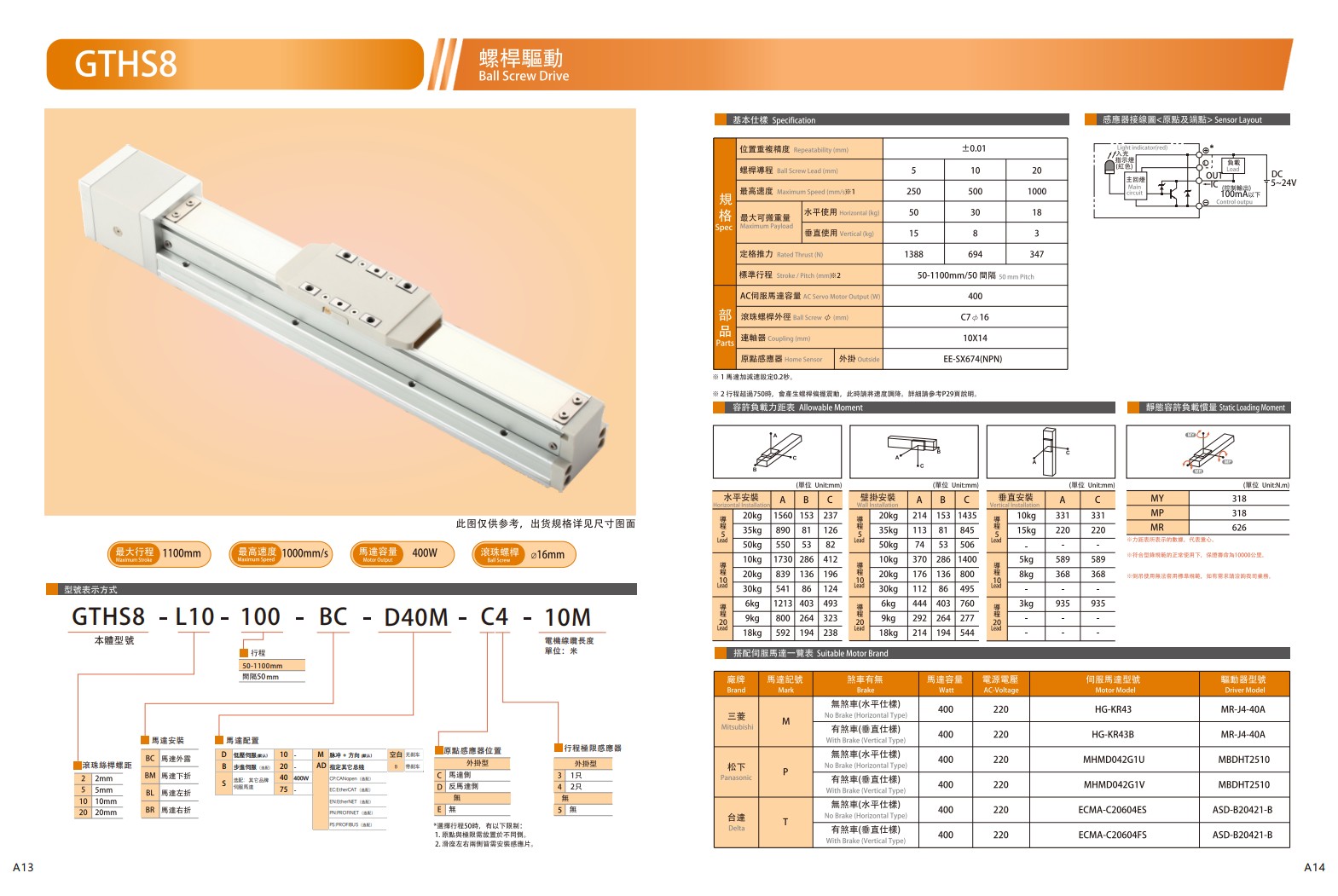 伺服电机直线模组GTHS8 400W