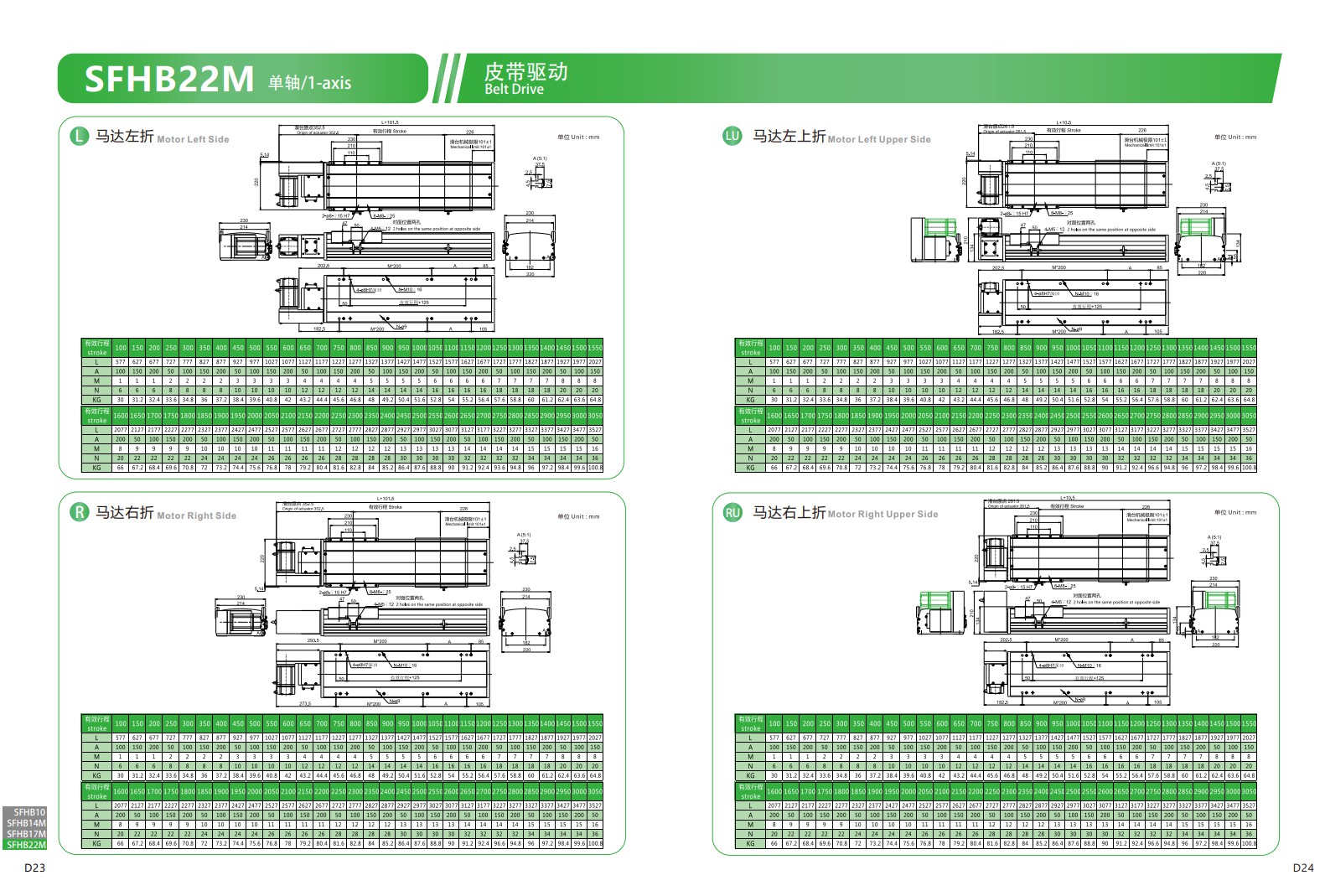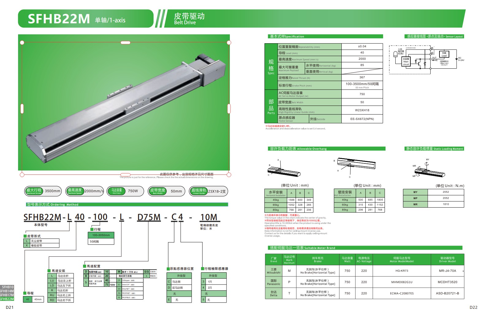 伺服电机直线模组SFHB22M是一款高性能自动化传动装置,专为实现高精度直线运动设计。它将伺服电机的旋转运动精准转化为直线位移,具备高精度、高重复定位精度特性,运行平稳且负载能力强,能适应多种复杂工况。该模组结构紧凑稳固,核心组件协同工作,可搭配不同功率伺服电机,广泛应用于电子制造、精密加工、自动化生产线等领域,助力企业实现自动化生产升级,提升生产效率与产品质量。