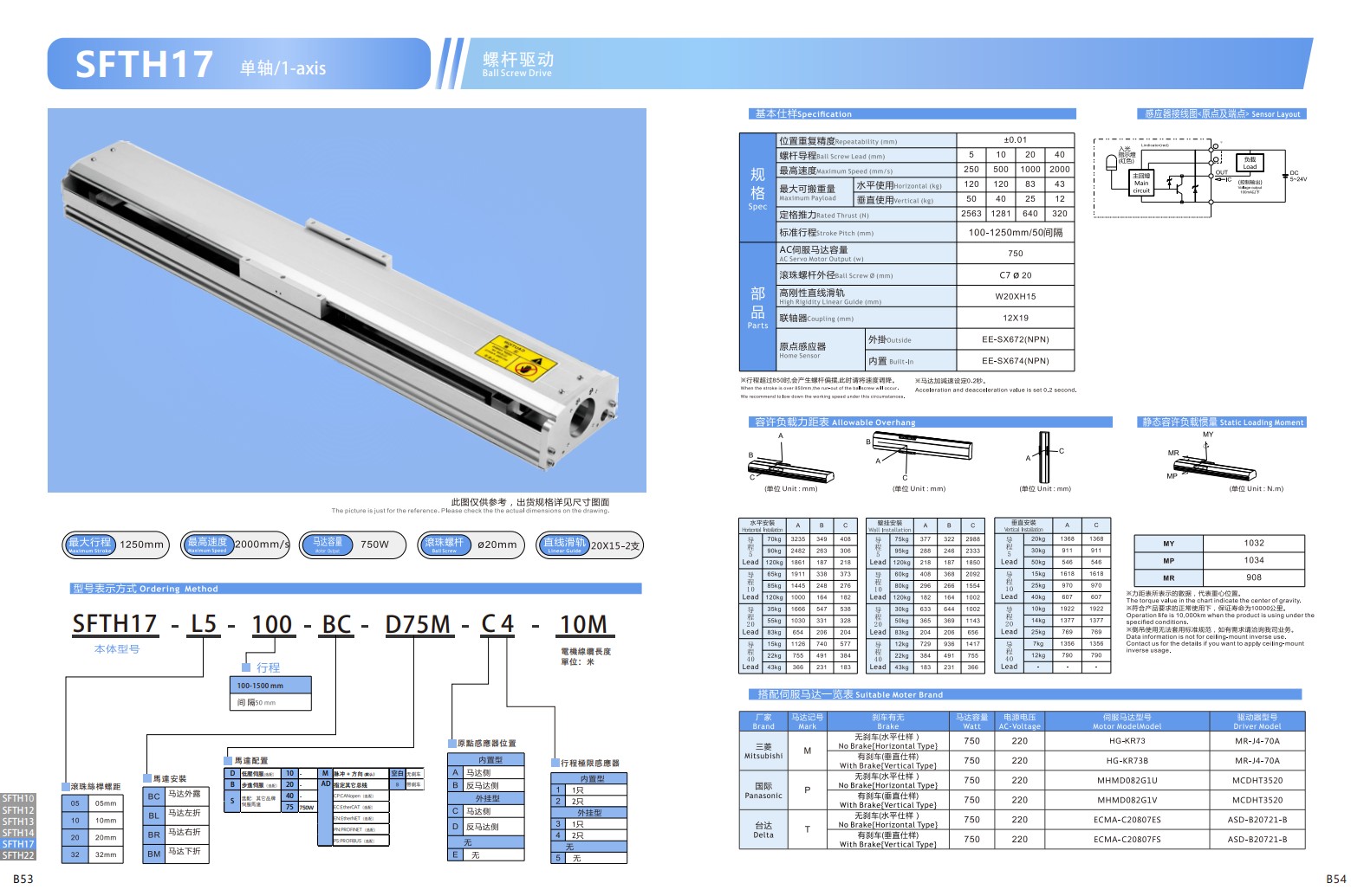 伺服电机直线模组SFTH17 750W是一款高性能自动化传动设备。它将伺服电机旋转运动转化为精准直线运动,具备高精度、高重复定位精度特性,运行平稳且负载能力较强,能适应复杂工况。其结构紧凑稳固,750W功率可满足中负载应用场景需求。模组搭配高品质伺服电机,可广泛应用于电子制造、数控机床、激光加工等领域,助力企业实现自动化生产升级,提升生产效率与产品质量,降低人力成本。