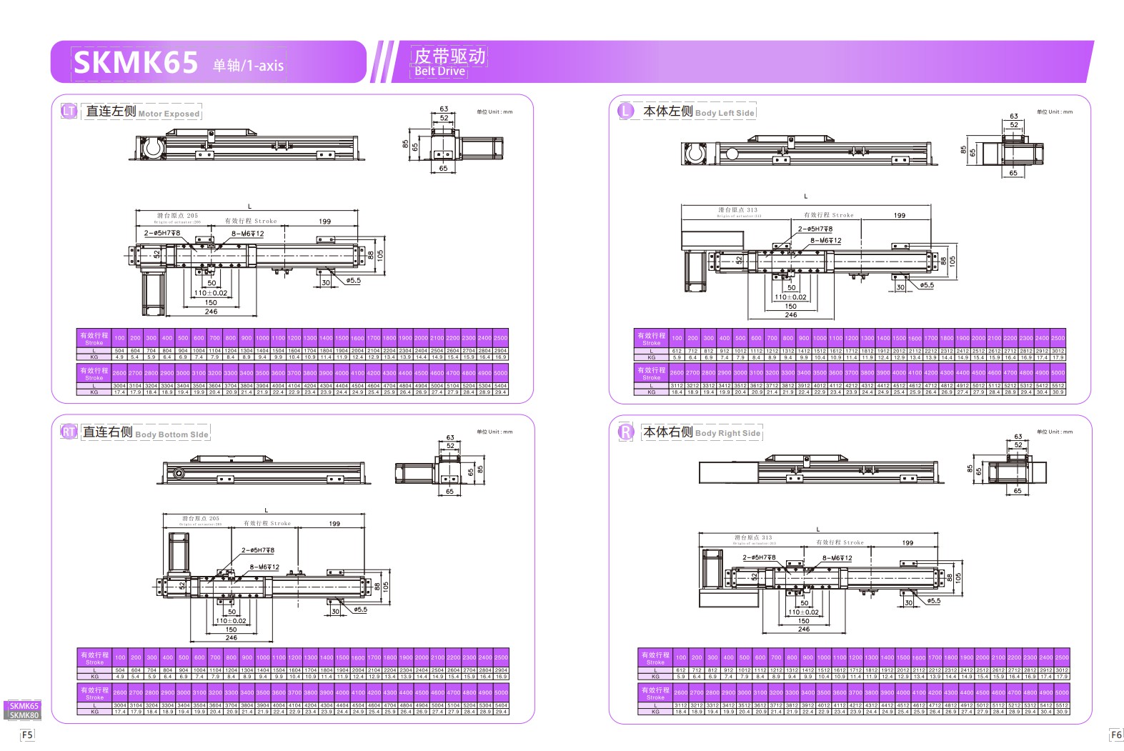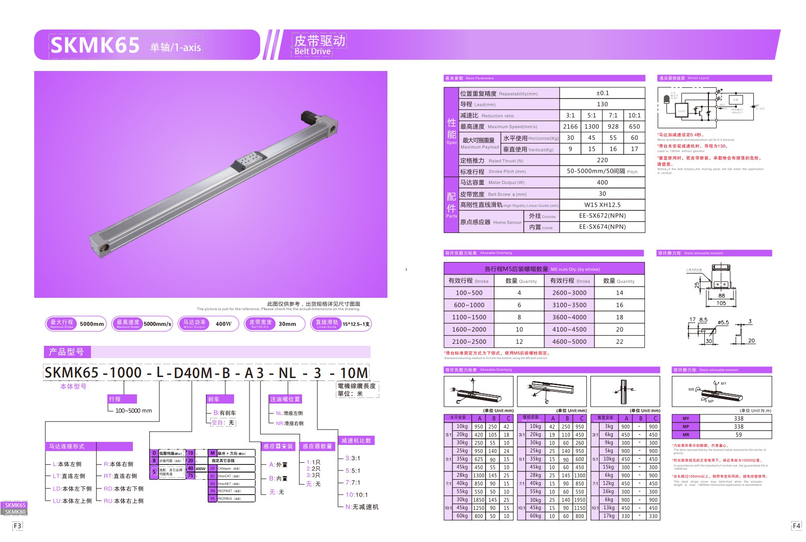 目前未找到关于伺服电机直线模组SKMK65的直接详细介绍。不过,伺服电机直线模组一般通过伺服电机驱动实现精准直线运动,具备高精度、高重复定位精度特性,运行平稳且负载能力较强,能适应多种复杂工况。其结构紧凑稳固,可搭配不同功率伺服电机,广泛应用于电子制造、数控机床、激光加工、自动化生产线等领域,有助于企业实现自动化生产升级,提升生产效率与产品质量。具体到SKMK65,可进一步咨询厂商获取详细参数与应用场景信息。