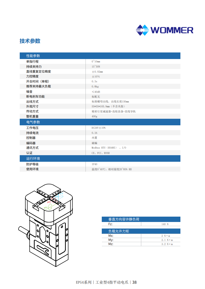 电动手抓卧式滑块型LG2行程40mm夹持力210N 厂家 代理 图片 型号 参数 价格 货期