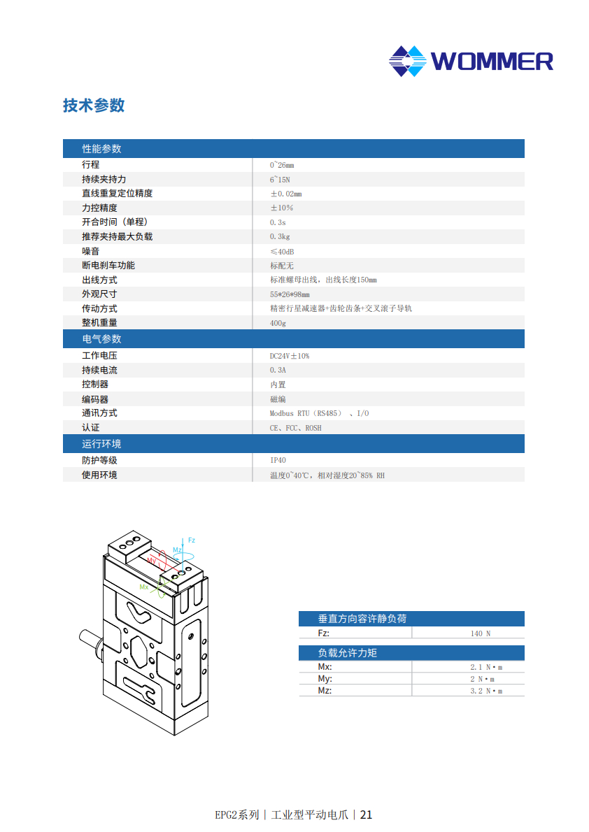 平行电动夹爪EPG2-26-15 夹持力6-15N 行程26mm