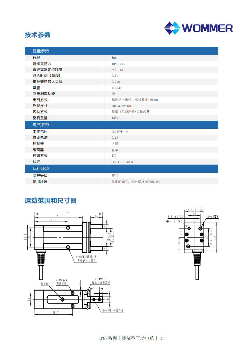 经济型电动夹爪 EPGS-8P 夹持力10N 行程8mm