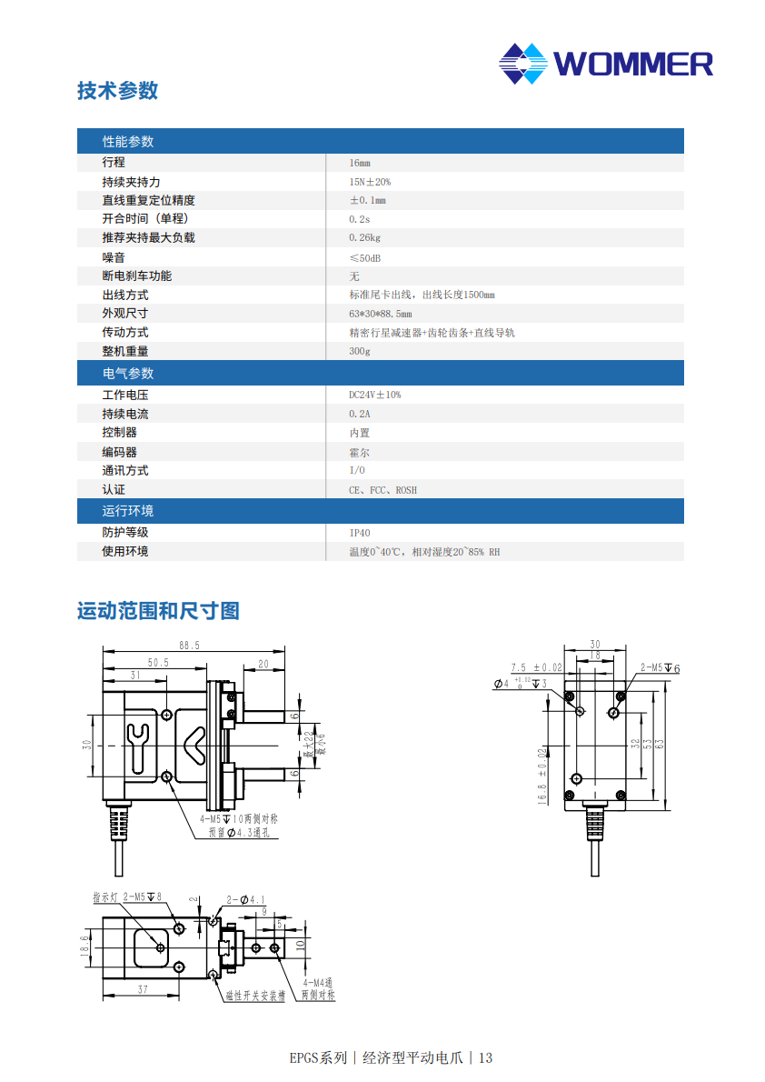 经济型电动夹爪 EPGS-16 夹持力15N 行程16mm