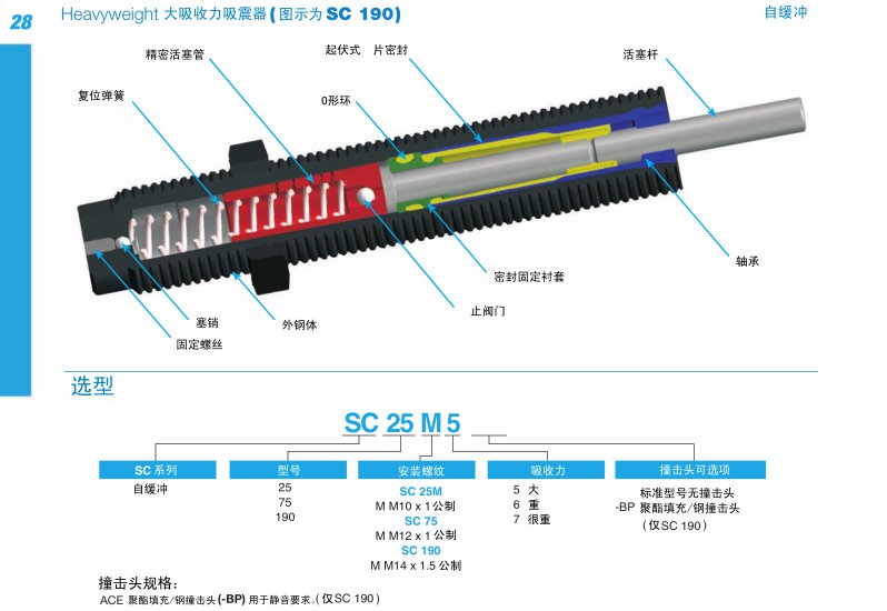 ACE Controls及SC 25,SC 75 SC 190 Heavyweight系列是SC 300 SC 650 Heavyweight及大吸收力系列的补充产品。相比同规格吸震器,有效重量增加950%280%,吸收力提高。