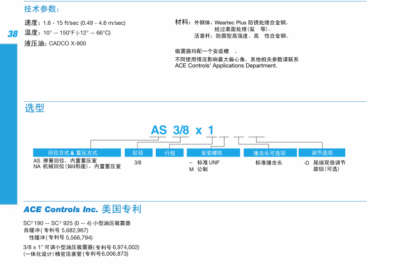 ACE Controls 3/8 x 1”小型吸震器为多孔可调式设计,有效重量及吸收力范围大,适用强。应用时,可以调节前端旋钮或尾端旋钮调整缓冲力量。