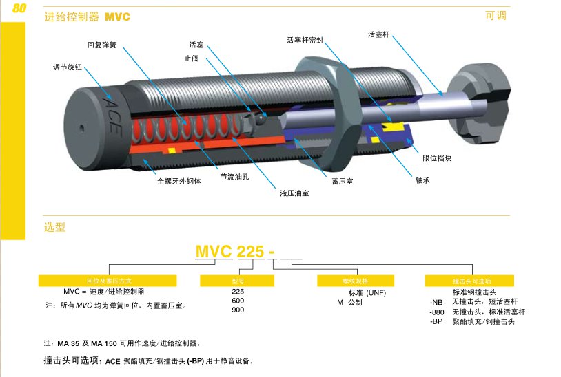 MVC 系列为全螺牙外钢体,标准撞击头,内置限位挡块。安装使用方便,相关附件资料参阅第40页。