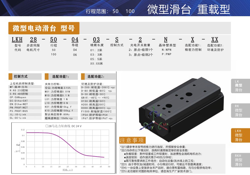 电动微型滑台重载型LKH28 行程50 100 厂家 代理 图片 参数 型号 销售 价格 货期