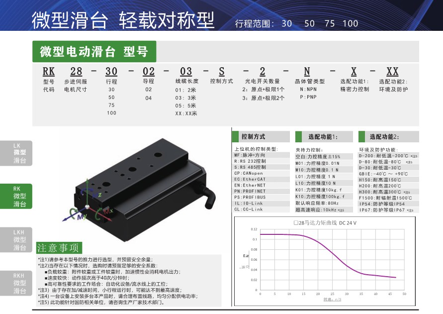 电动微型滑台RK28 行程30 50 75 100 厂家 代理 图片 参数 型号 销售 价格 货期