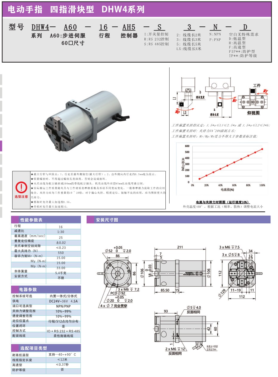 四指电动夹爪DHW4-A60-16 厂家 代理 图片 型号 参数 价格 货期