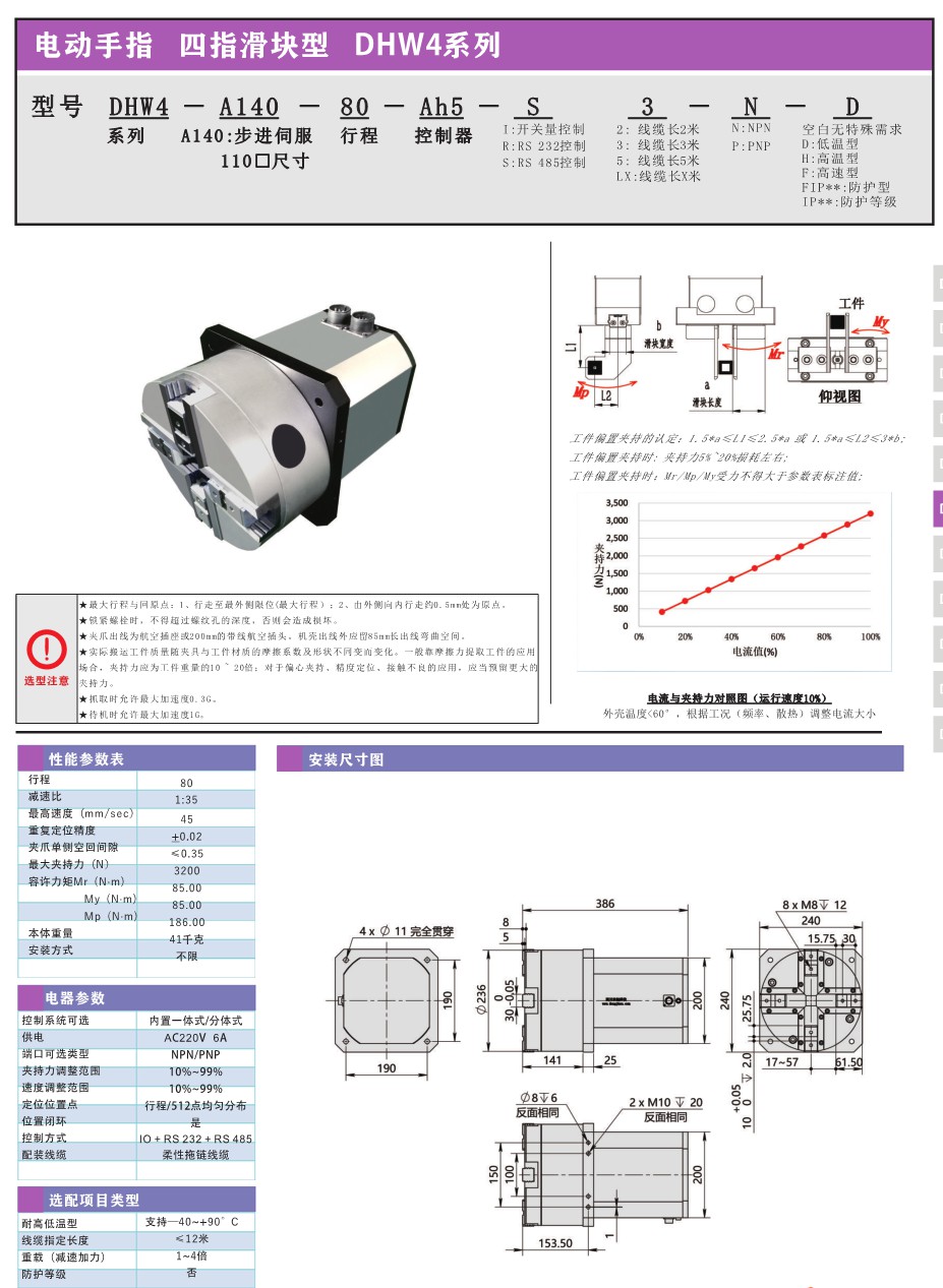 四指电动夹爪DHW4-A140-80 厂家 代理 图片 型号 参数 价格 货期