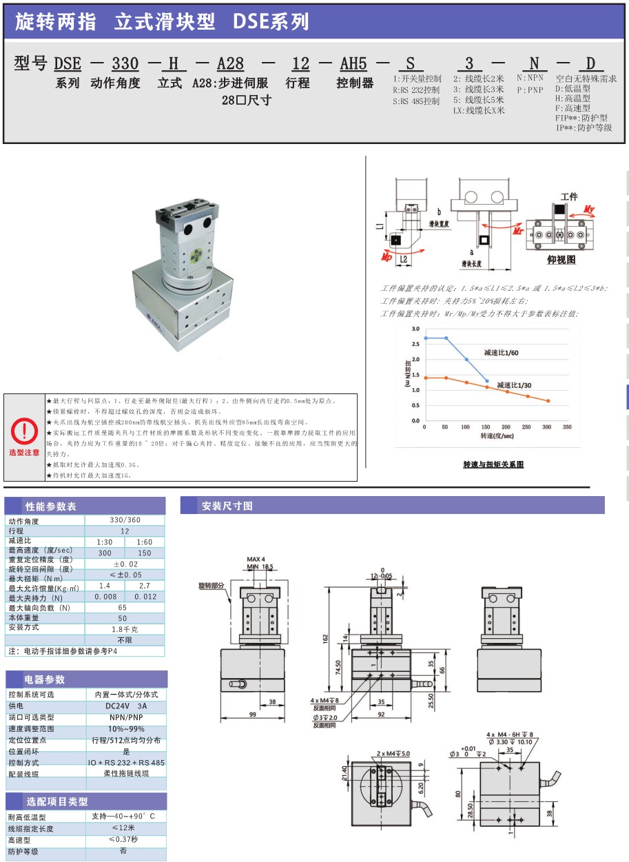 旋转电动夹爪 二指 DSE-330-H-A28-12 厂家 代理 图片 型号 参数 价格 货期