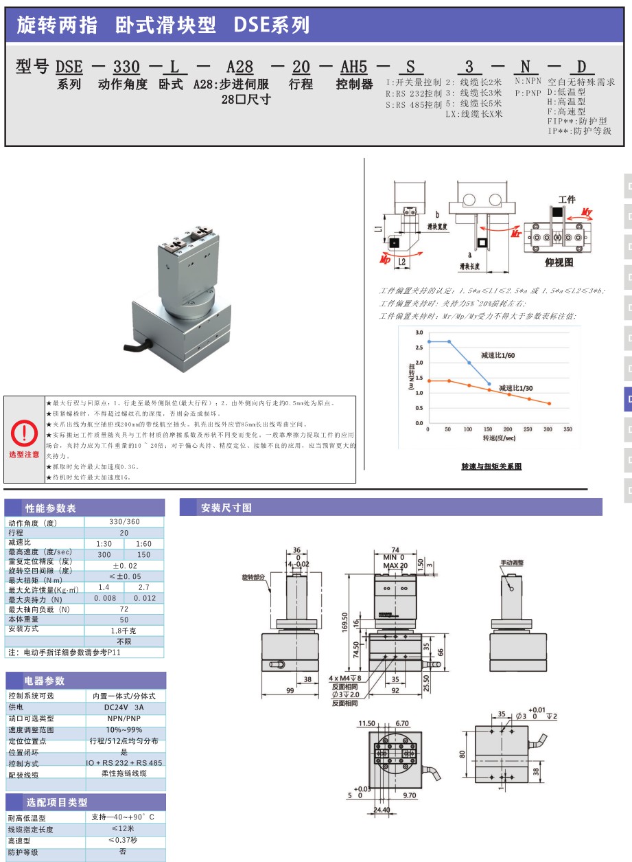 旋转电动夹爪 二指 DSE-330-L-A28-20 厂家 代理 图片 型号 参数 价格 货期