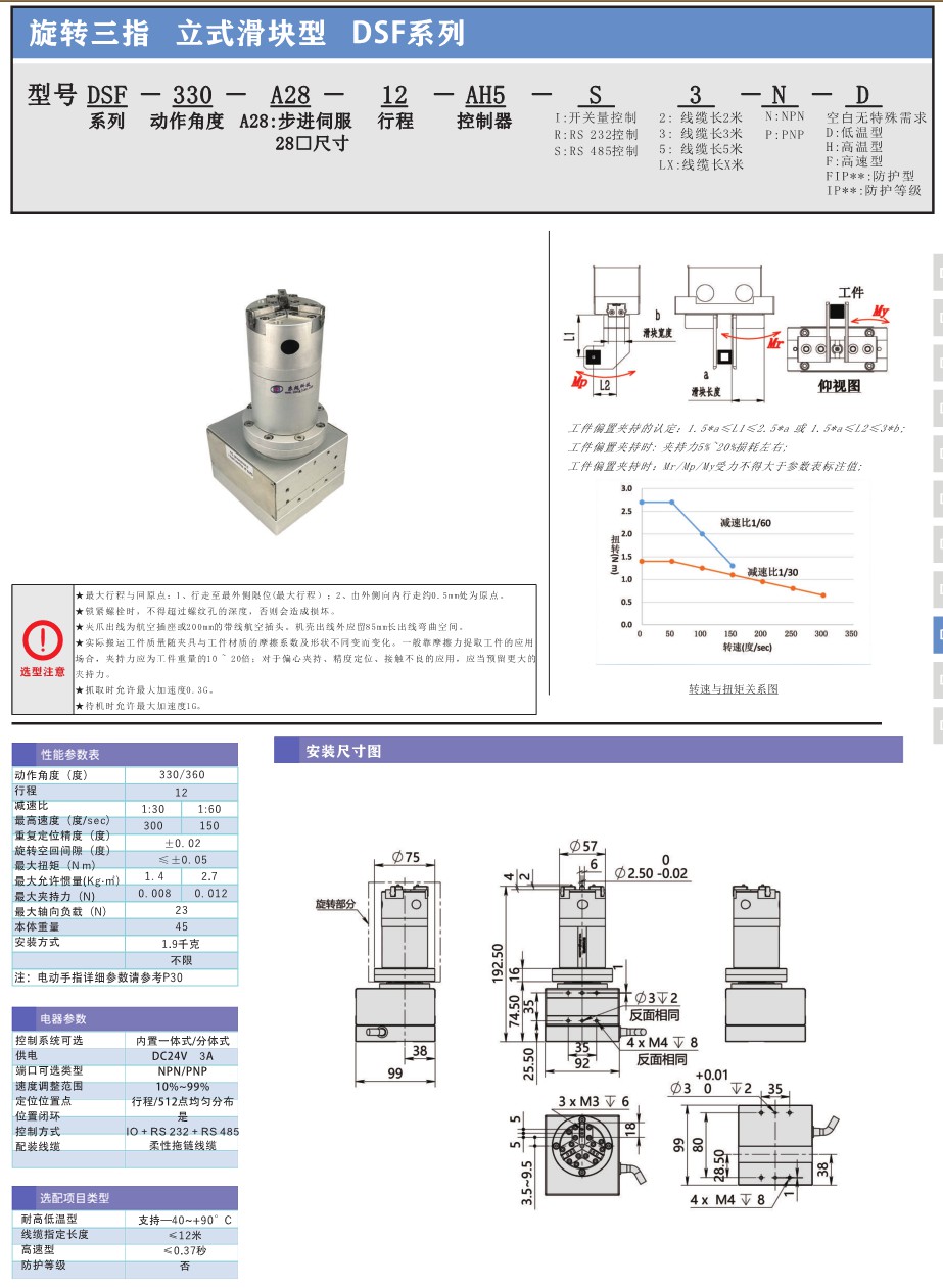 旋转电动夹爪 三指 DSF-330-A28-12 厂家 代理 图片 型号 参数 价格 货期
