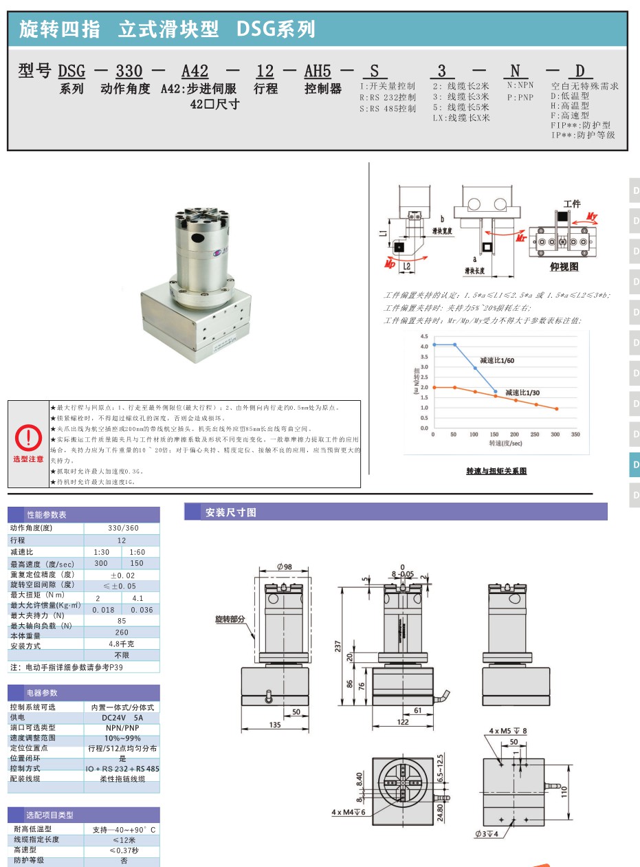 四指旋转电动夹爪 DSG-330-A60-16 厂家 代理 图片 型号 参数 价格 货期